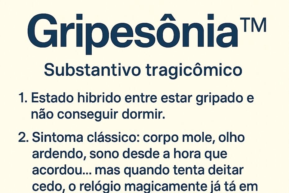 📍 Substantivo tragicômico-de-madrugada 📖 Estado híbrido entre gripe e insônia, quando o corpo tá pedindo caixão mas o cérebro resolve virar DJ. 🤒 Sintoma clássico: olho ardendo, corpo mole, febre alta, energia baixa e relógio… 😵💫 Gripesônia™