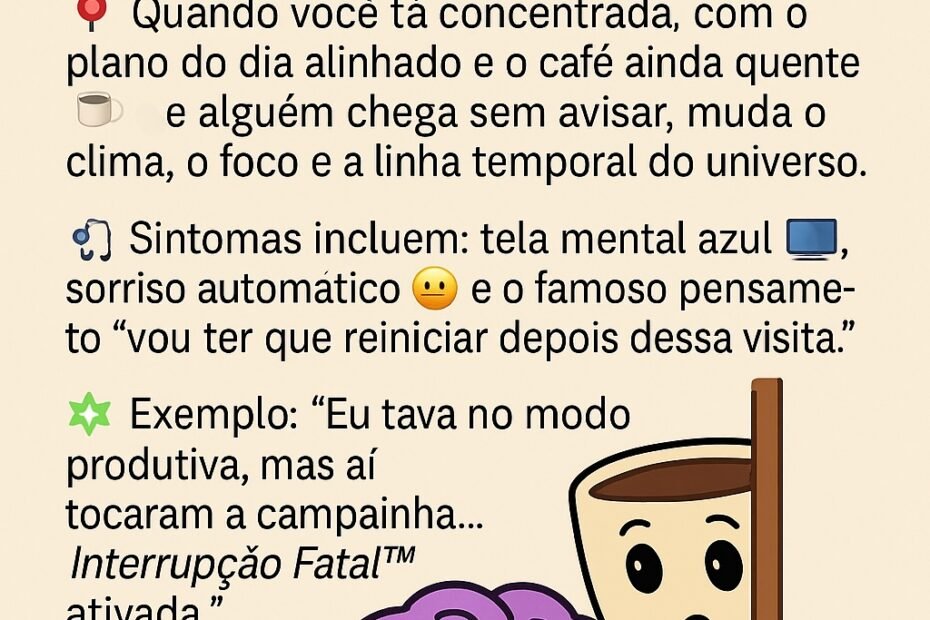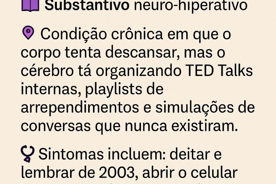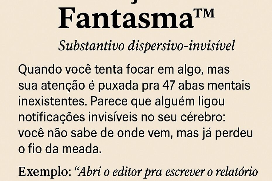 📌 Substantivo dispersivo-invisível 📖 Quando você tenta focar em algo, mas sua atenção é puxada pra 47 abas mentais inexistentes. Parece que alguém ligou notificações invisíveis no seu cérebro: você não sabe de onde vem,… 🚨 Atenção Fantasma™